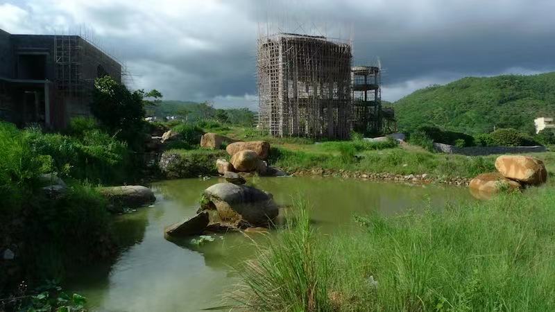 郑:建“帝国”,是对游戏的兴趣跟我现在要解决的建筑问题结合起来,还是活在一个游戏的世界里面。但和电脑游戏不同,虚拟就是一种玩嘛,没有压力的,熬了一个通宵就去睡了,但是在现实里面更惨,你要面对现实的压力,怎么找钱,怎么请人,结构找谁,怎么铺路啊,怎么挖河啊,怎么把石头调过来,这都是要花人力物力,20多吨的石头放哪里我都要确认;还有什么局的人又来了,说你是非法的,发一个命令给你,明天必须要到我这里把所有的手续办了。但在我建造的过程中始终有新的东西会出来。