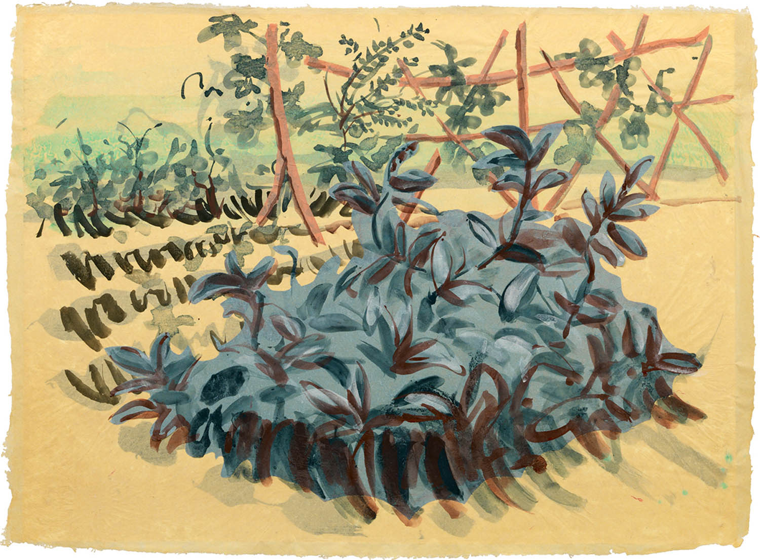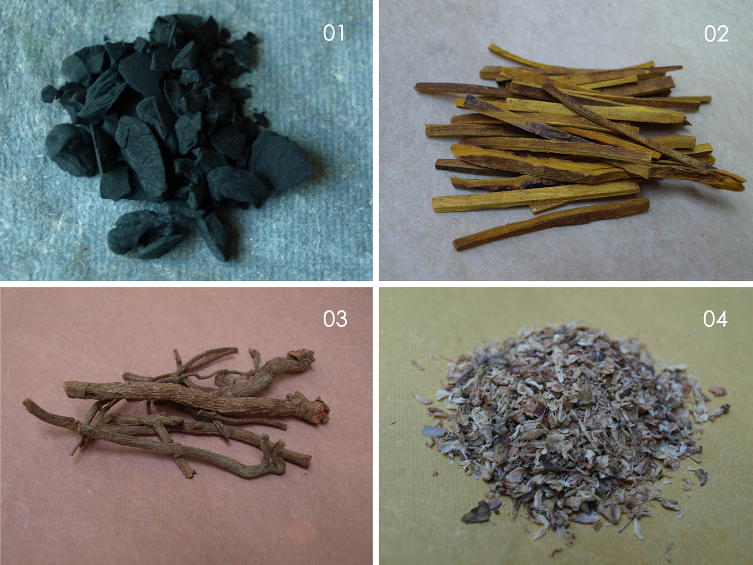 从吾木村离开,回到作为大都市的北京,又回到伦敦,我带回一叠画稿。这些画稿画在不同的纸上,有我在都铎小组造的纸,也有使用“赤裸牛仔裤”制成的纸,还有一些东巴纸的样本。这些画是使用玉龙雪山的赭石和小毛驴农园收获的靛蓝绘制的。我还收集了一组可入中药的染料植物。鉴于瑞香狼毒在欧洲无法生长,我无法对我吾木之行造东巴纸所学到的东西做出回应,也许真正的东巴纸确实只能由玉龙雪山上的纳西人制作,但我仍可选择那种超自然的思考方式,以及尝试从中药植物中提取染料制作染色纸张——我称之为“中药纸”。