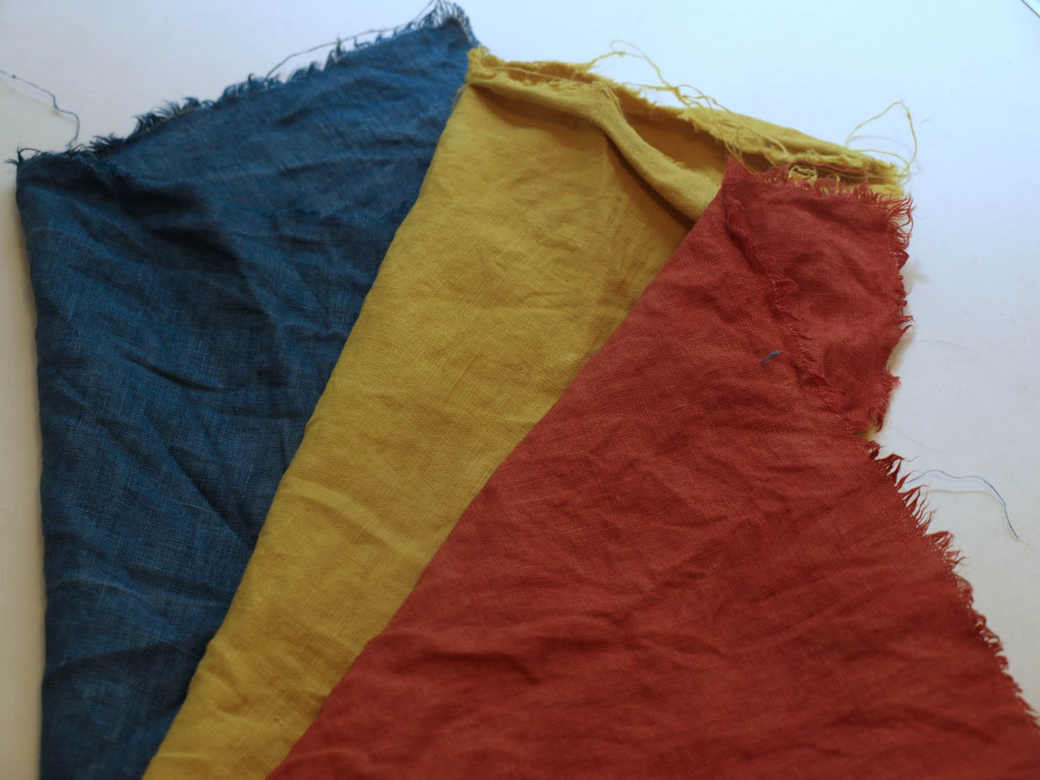 红茜草、黄柏树以及靛蓝染色的亚麻布