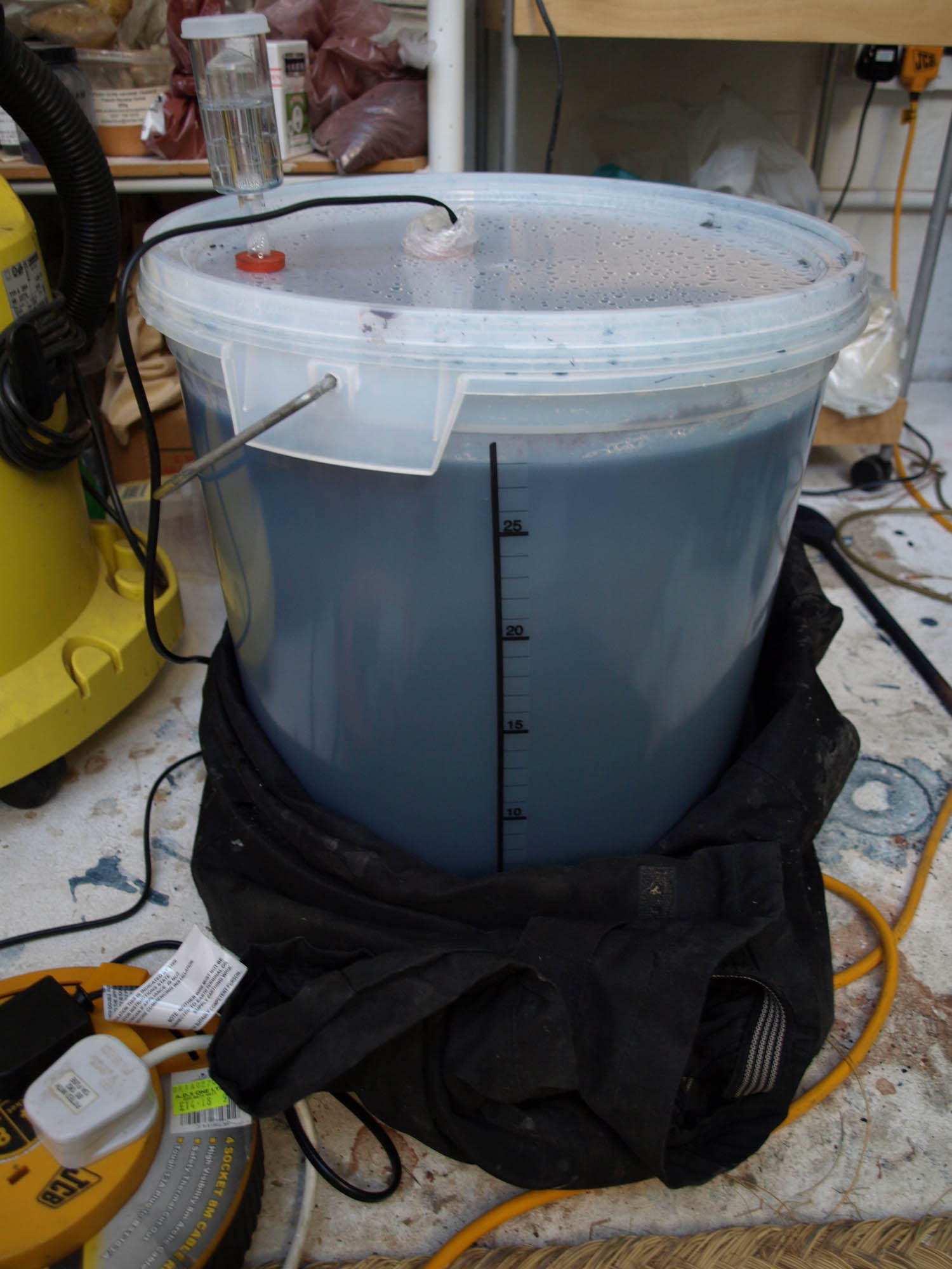 用浸入式加热器和我的一条裤子保温的靛蓝发酵罐