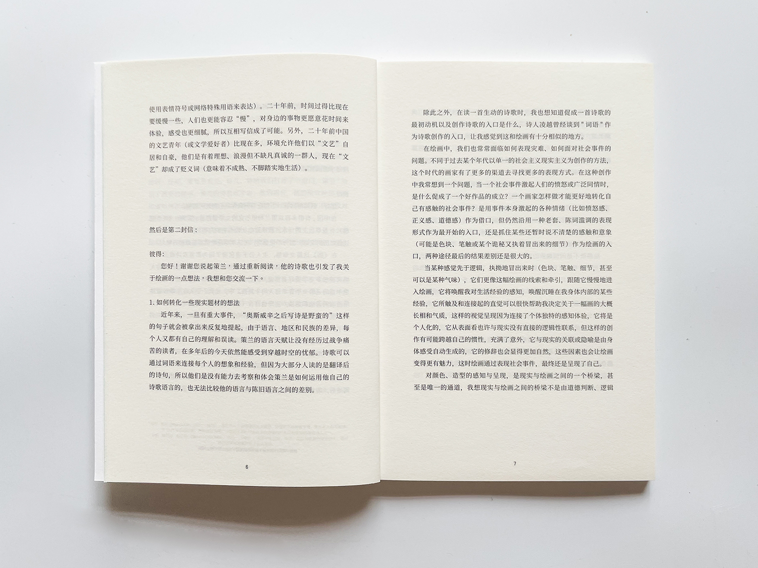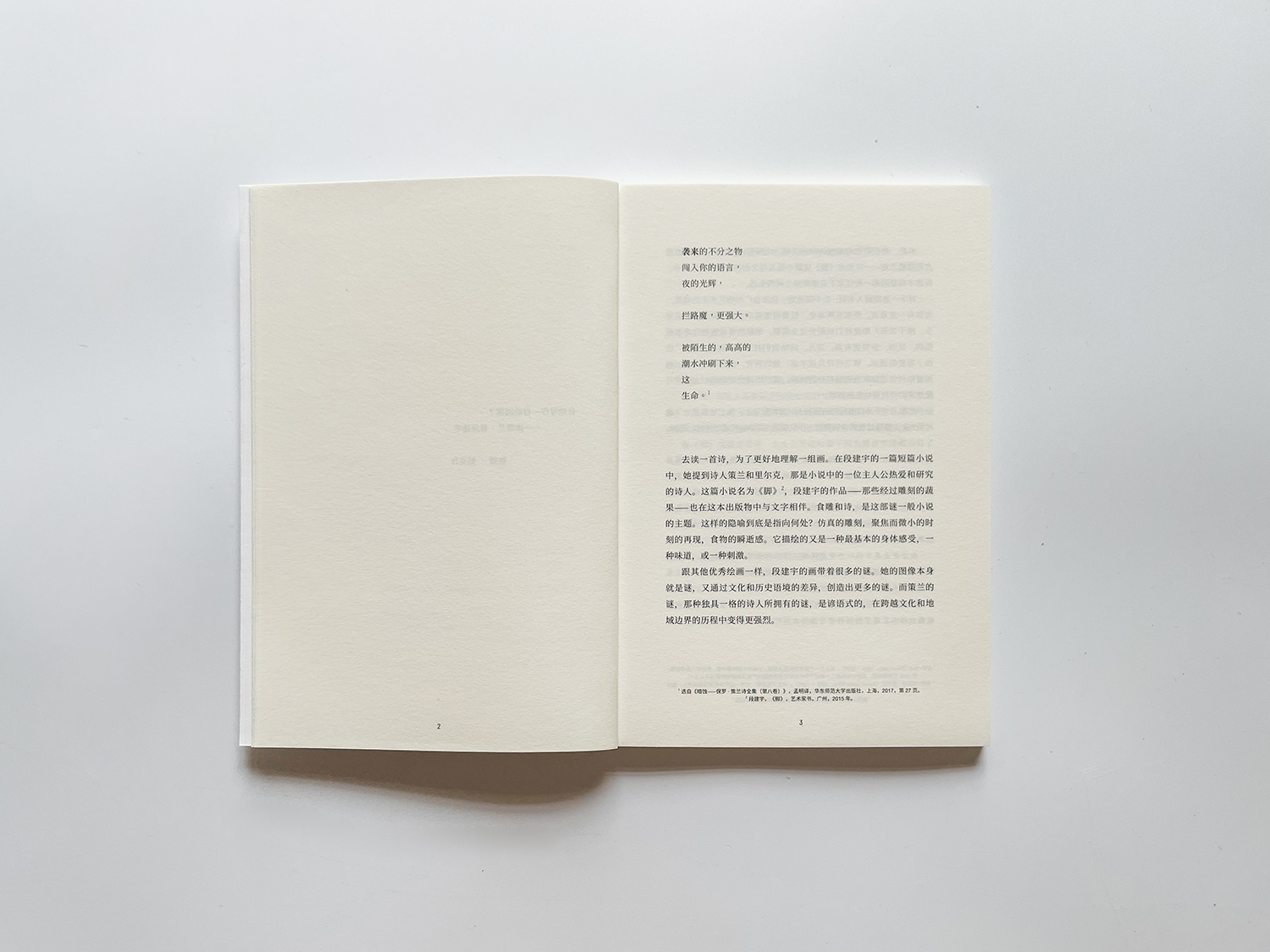 面对着段建宇的绘画所带来的谜题,彼得·帕克什敏锐地捕捉到她的绘画和德语诗人保罗·策兰诗歌之间的相通之处(“策兰的谜,那种独具一格的诗人所拥有的谜,是谚语式的,在跨越文化和地域边界的历程中变得更强烈”),从而和艺术家展开一系列坦诚而又生趣盎然的笔谈。由此,这本书引导我们的思考来到诗和画之间、不同的观念和隐喻之间、不同的存在和超越存在的图像之间。