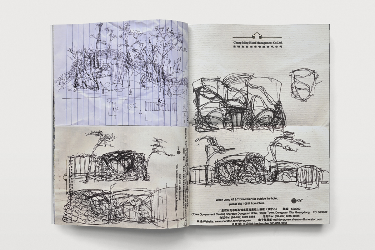 “帝国时代”的建造始于某种着迷,而非理性的规划。从一开始,它就不是一般意义上的按图施工的过程,而更多是根据艺术家感受和思考随时进行调整的一个过程:在家中、旅途中、酒店里,郑国谷会随手画下它对“帝国时代”空间的想象,这些散见各处的手稿在随后的过程中慢慢聚合成整体空间的关系。