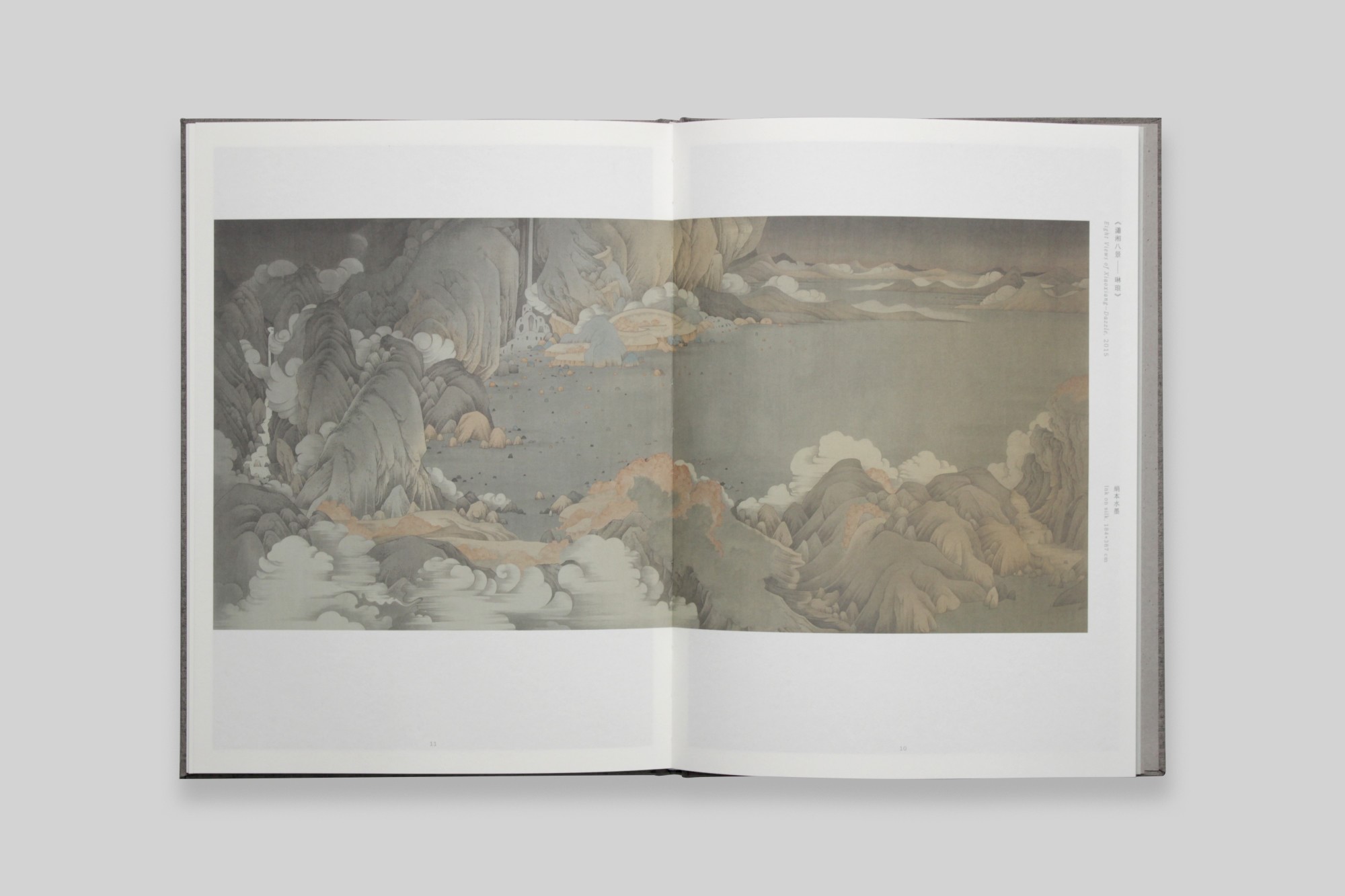 文字册部分收录了策展人孙冬冬、潘彦霖为艺术家撰写的文章,以及田霏宇与艺术家的访谈,分别探讨了“潇湘八景”在历史中不断被建构而演化出的多元面貌,郝量对传统山水美学路径和系统方法论的观照,中国传统绘画的“现代性”论题,以及他“文化考古”式的研究型工作方法。