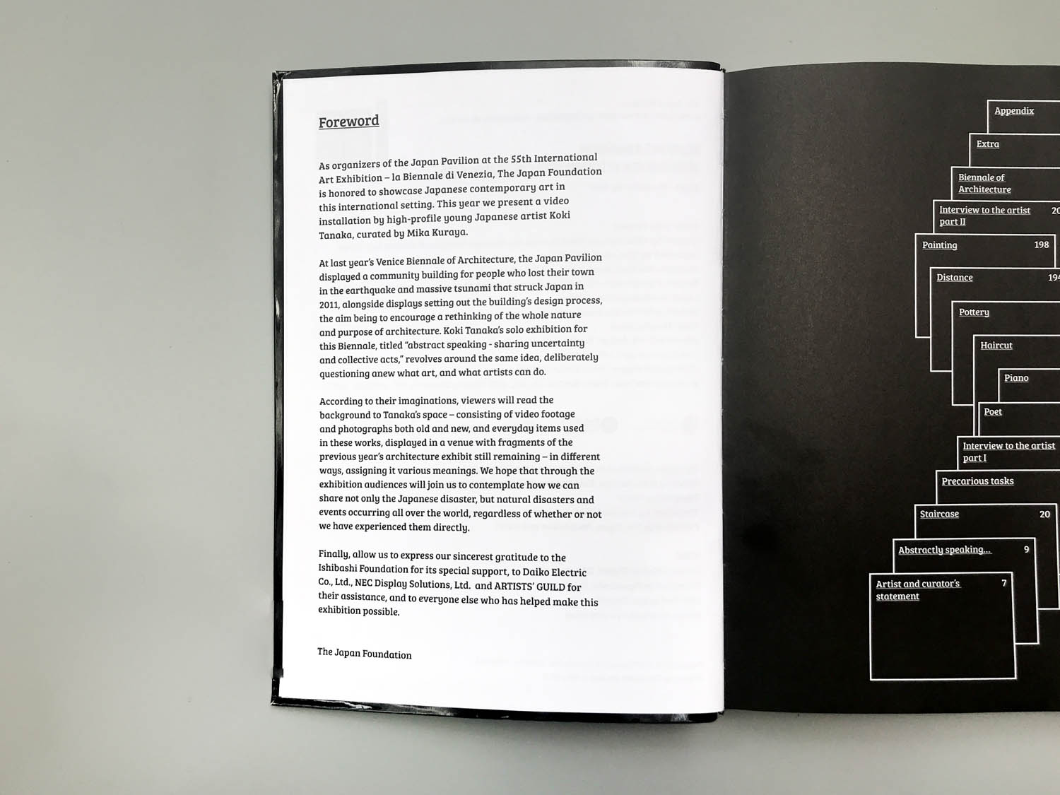 《抽象的述说:分享不确定和集体动作》是因应第55届威尼斯双年展(2013)田中功起代表日本馆参展所作的研究性出品,它汇聚了田中功起这些年的当代艺术创作尝试,这些思考往往和他对日本灾后如何重新感受日常生活有关,但更延伸到今天人们如何重新理解生存处境和创造与世界的新型关系,在某种意义上来说,这也许是一本非常独特的未来生存手册。