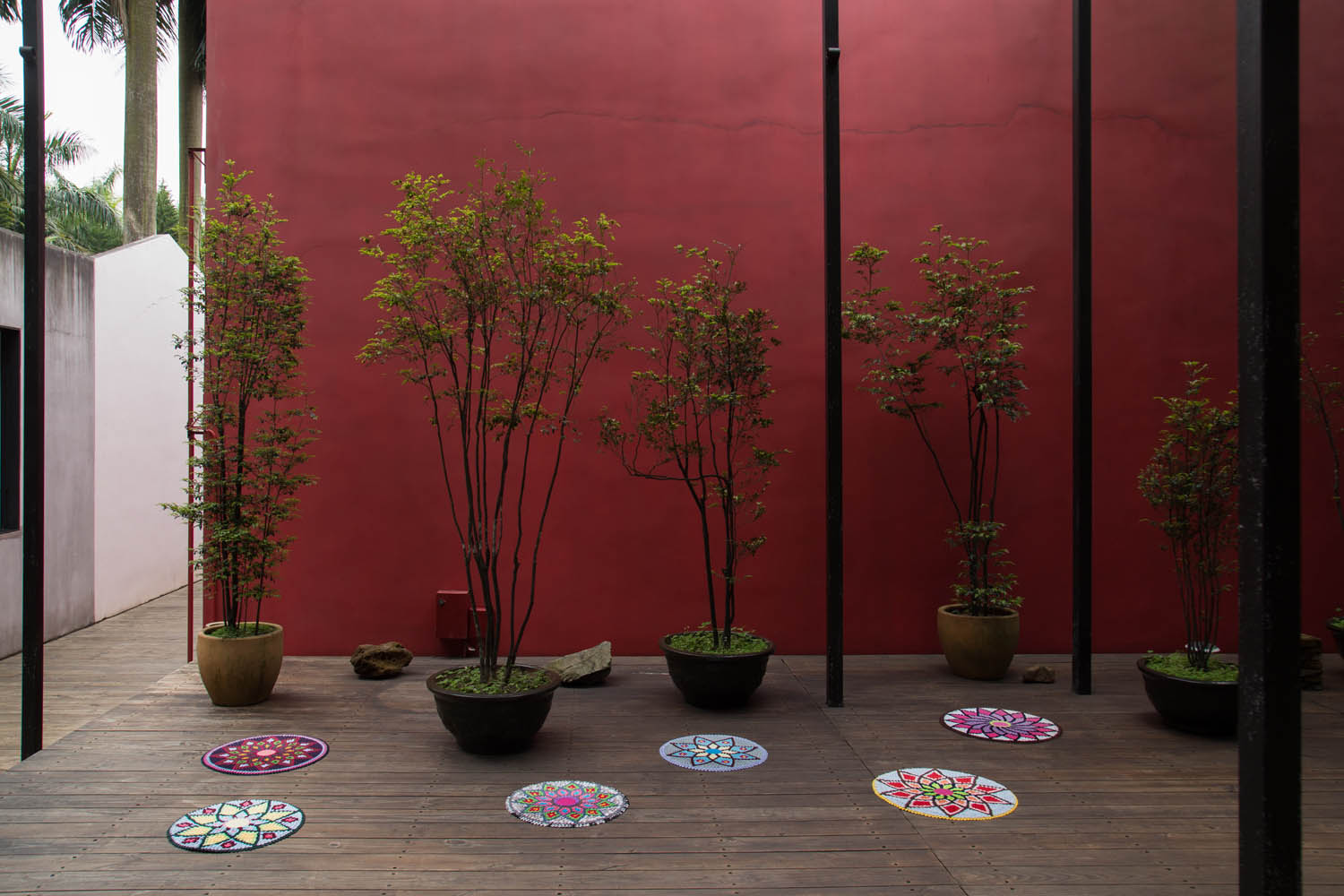 这些垫子是泰国艺术家Pratchaya Phinthong在泰国市场上不期而遇的发现,艺术家并不把这些小垫子看做垫子,而是地毯。他认为它们铺在地上,脚可自然踏入其间。Phinthong 形容道:人与垫子的接触就像平静的水面被划破,掀起了无限的涟漪。
