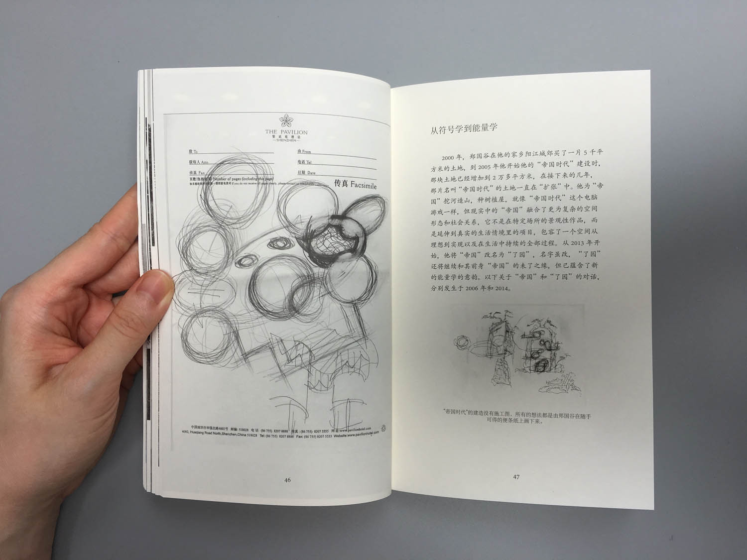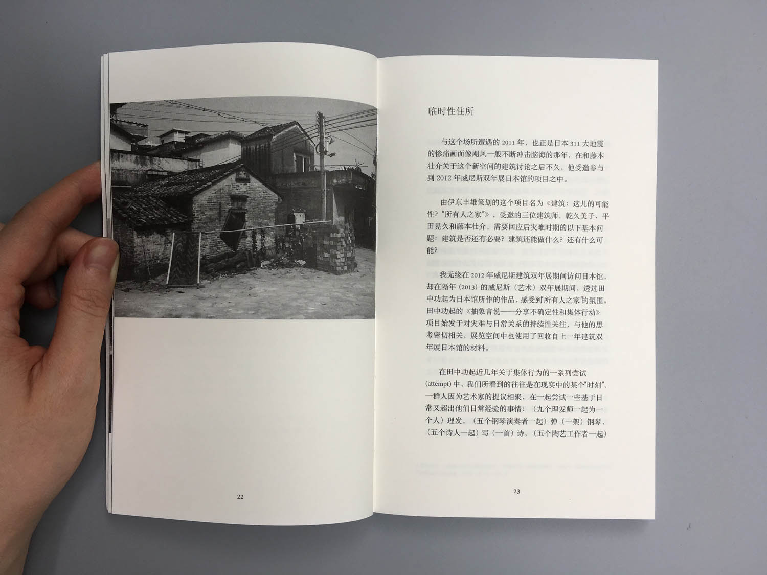 《走向无所意图的空间(第一版)——关于藤本壮介的“镜花园”建筑设计:过程中的研究》尝试呈现和分享围绕“镜花园”建筑过程中的一些研究和相应的思考。书名也暗含了对柯布西耶 (Le Corbusier)《走向新建筑 (Towards a New Architecture)》的回应。《巢与穴(Nest or Cave)》(收录到藤本壮介早期的重要著作《原始之未来》)一文,可以说是了解藤本建筑思想的重要入口,藤本通过比较以柯布西耶为原型的“巢型屋”和他认为的更为原生状态的“穴型屋”,想象出“原始之未来”的图景:一种重回根源的建筑形态。