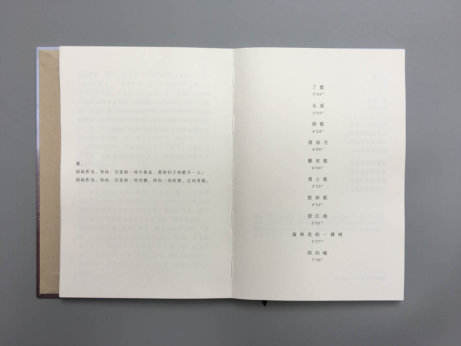 我的创作跟所有我的听都有关,包括那些我并不喜欢的,被动与不经意间听到的。以至于,我无法保证那些我不喜欢的,对我的影响不甚。有段时间,我认为这世上根本没有百分之百的原创。回响这个词,我中意了很久,因为它很接近无法言说的“现实的样子”。跟朋友说起这张《回响》歌集,我还会说两个字:“清楚” 。这些最远迄今2400年的禅诗、偈诵, 先是触动了自己,时常在早课后吟诵,日久成了歌,这非百分之一百的原创,于我,却绝无仅有。如同“琉璃嗝夯”的嗝与夯,来路去处不见,彼此难究,回响,却声声历历。