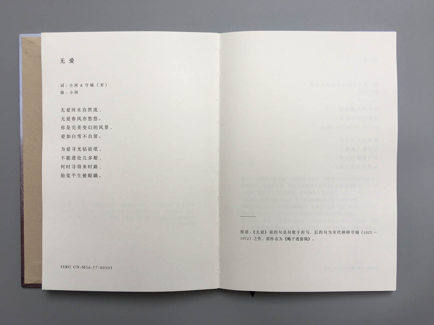 “界”以正命, 却常作烦恼、是非滋生之所。七贤嵇中散,越过琴笛鼓铃,了知“声无哀乐”。大师吴清源,越过黑白敌我,见“棋盘如天宇浩荡,落子如星辰位列” 。世上并没有那么多笨蛋,却有数不尽无法将结论落实下去者。何歌手这些拙编陋唱,意不在声,耽搁闻者宝贵生命的同时,愿我们,闻性有响。哪怕如起晨的闹铃也好,因为醒来,就不是睡着。